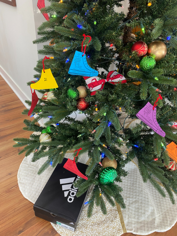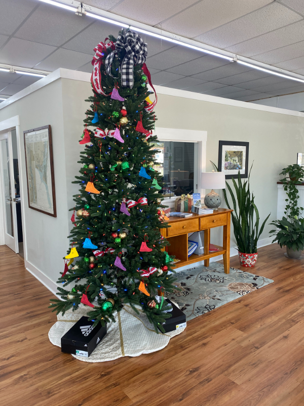 You will notice a special Christmas Tree at our office this year that is decorated with paper tennis shoes!